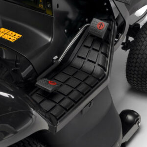 Mit leistungsstarken und gut ausgestatteten rasentraktor Alpina AT6 102 HWA erledigen Sie mühelos umfangreiche Arbeiten im Garten.nnDie Leistung wird von einem luftgekühlten Alpina ST550 Viertaktmotor mit 10,1 kW / 586 cm³ geliefert, der überlegene Kraftstoffersparnis, niedrige Vibrationswerte und ein beeindruckendes Drehmoment bietet.nnDer Antrieb des AT6 102 HWA ist hydrostatisch, wo Sie nur mit einem Fußpedal beschleunigen und bremsen, ohne die Gänge manuell wechseln zu müssen.nnDabei wird die Manövrierfähigkeit optimiert und das Umgehen von Hindernissen erheblich erleichtert. Dank der von Alpina angebotenen Sammel-, Heckauswurf- und Mulchfunktionen können Sie sich an eine Vielzahl von Grasbedingungen anpassen. Der AT6 102 HWA profitiert von einer elektromagnetischen Messerkupplung, die das Ein- und Ausrücken der Messer zu einem völlig mühelosen Vorgang macht. Zu den weiteren attraktiven Merkmalen zählen langlebige und energieeffiziente LED-Scheinwerfer, die bei schlechten Lichtverhältnissen eine wesentliche Beleuchtung bieten und eine Stoßstange für robusten Aufprallschutz.nnMulchkit ist separat erhältlichnnnnnVorteilen besonders laufruhiger, vibrationsarmer und langlebiger Motor durch 2-Zylinder-Technikn Hydrostat-Getriebe ermöglicht Geschwindigkeitsveränderung sowie Wechsel zwischen vorwärts und rückwärts fahren ohne schalten oder kuppeln zu müssenn Hydrostat-Getriebe erlaubt stufenlose Wahl der Fahrgeschwindigkeitn bequemes Anlassen des Motors per Zündschlüsseln einfaches Reinigen des Mähwerks über die Mähwerk-Waschdüsen Mulchkit optional erhältlich: Das Schnittgut wird so klein gehäckselt, dass es als natürlicher, biologischer Dünger auf der gemähten Fläche verbleiben kann. Besonders vorteilhaft in wachstumsstarken Perioden, da Entsorgung des Schnittguts entfällt.n Die Führungsräder am Mähwerk verhindern das Aufsetzen der Messer bei unebenem Gelände.n Der LED-Scheinwerfer ermöglicht das Arbeiten in der Dämmerung oder bei schlechten Sichtverhältnissen.n Die serienmäßig im Lieferumfang enthaltene robuste Stoßstange schützt verlässlich die Motorhaube des Rasentraktorsn mähen auch im Rückwärtsgang möglich, dadurch keine Mähunterbrechnung beim Wenden und Manövrieren. Spart Zeit und Nerven.